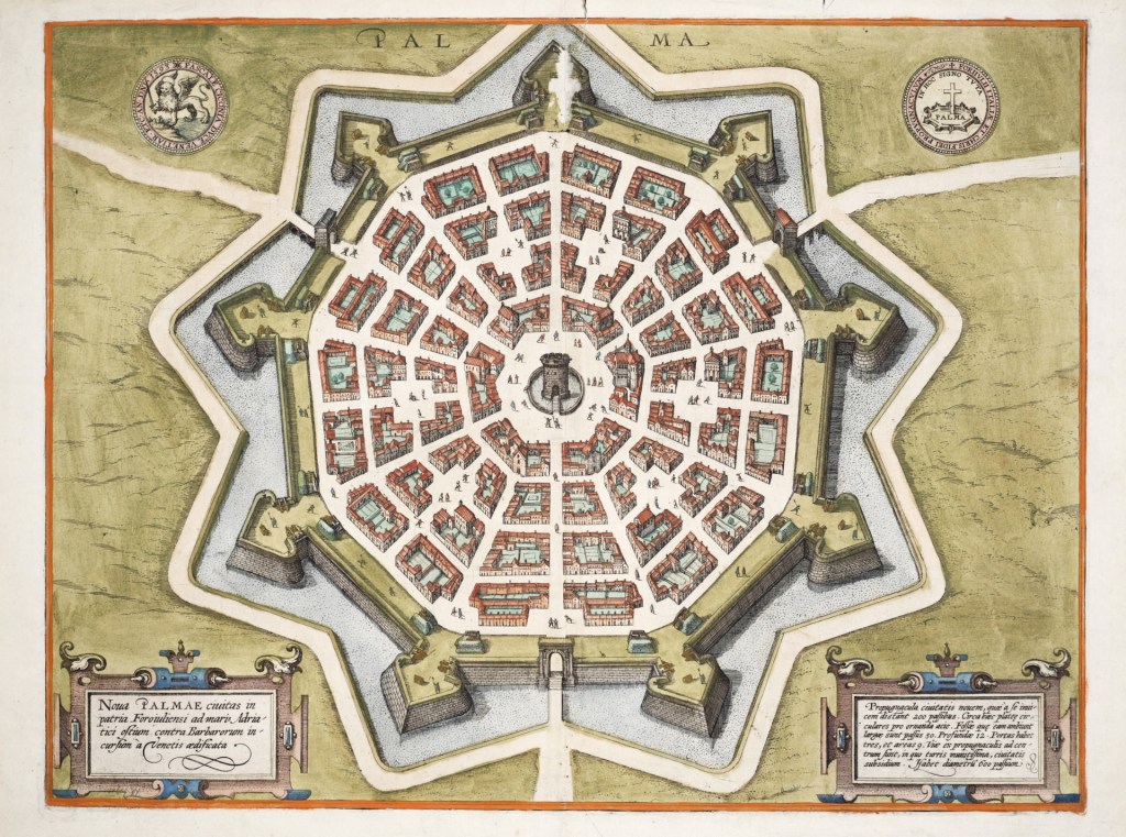 - Palmanova (Italien): Diese 1593 erbaute Stadt gilt als Paradebeispiel einer Sternenstadt. Mit ihrer neunzackigen Struktur strahlt sie Harmonie und Perfektion aus – so sehr, dass sie heute zum UNESCO-Weltkulturerbe gehört.