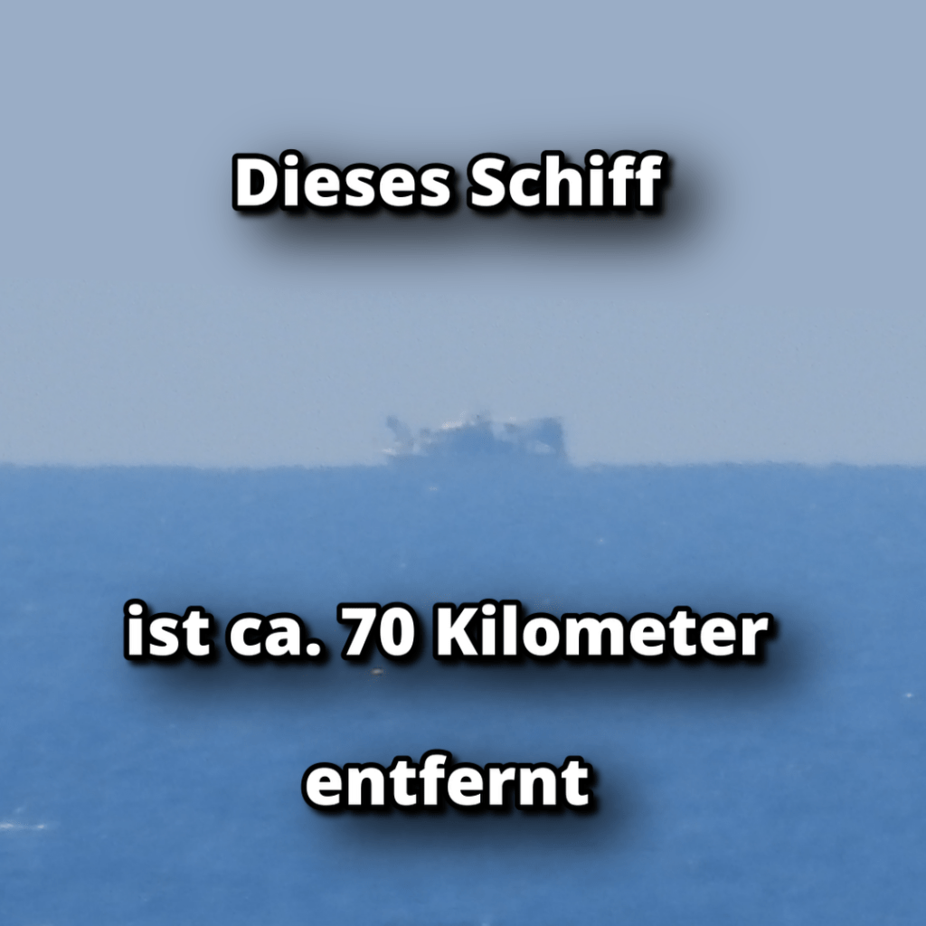 Die Ausgangssituation: Sicht auf ein Schiff bei 70 km Entfernung