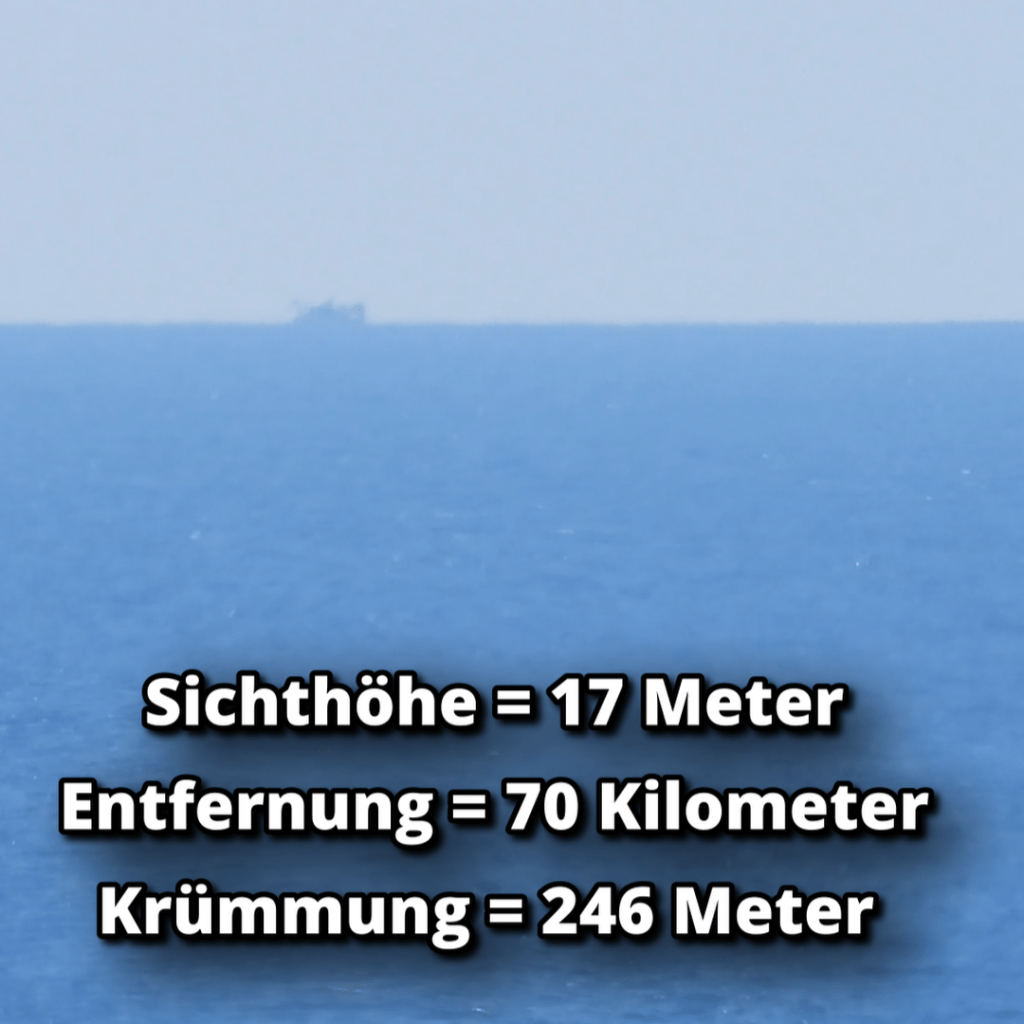 Wenn du bei 70 km Entfernung ein Schiff vollständig sehen kannst, obwohl laut offizieller Krümmungsformel über 246 Meter davon verschwunden sein müssten, bleibt nur eine einzige logische Schlussfolgerung: